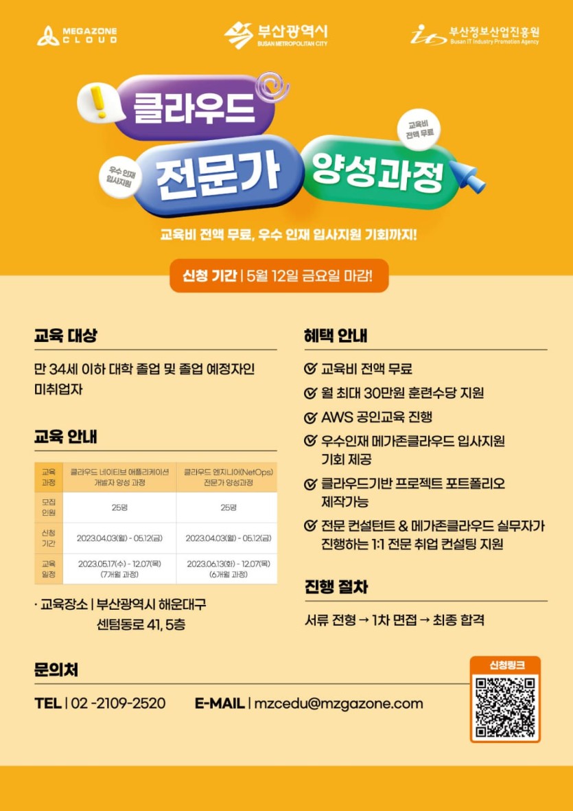 교육비 전액 무료에 우수인재 메가존클라우드 입사까지 ! 클라우전문가 양성과정 모집을 시작합니다.