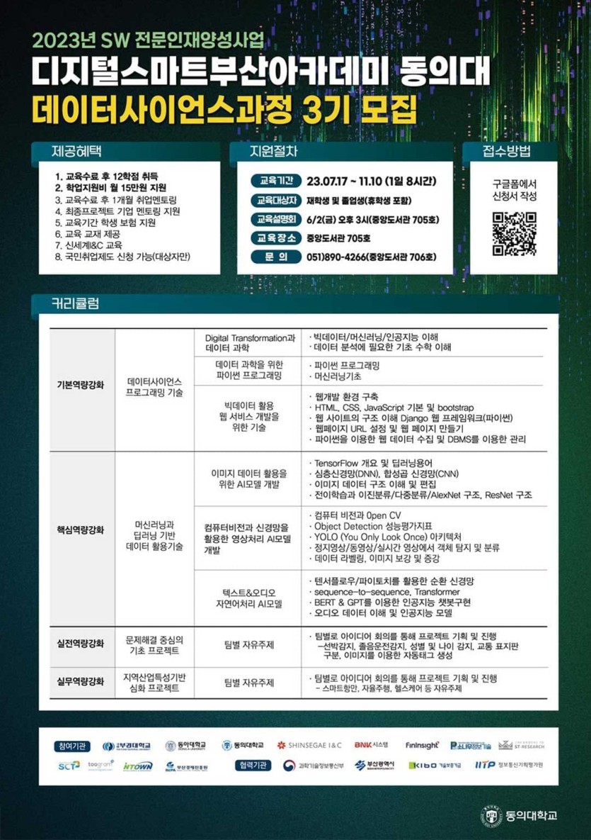 데이터사이언스 프로그래밍 기술, 머신러닝과 딥러닝 기반 데이터 활용기술, 문제해결중심의 기초 프로젝트 (문의:051-890-4266)