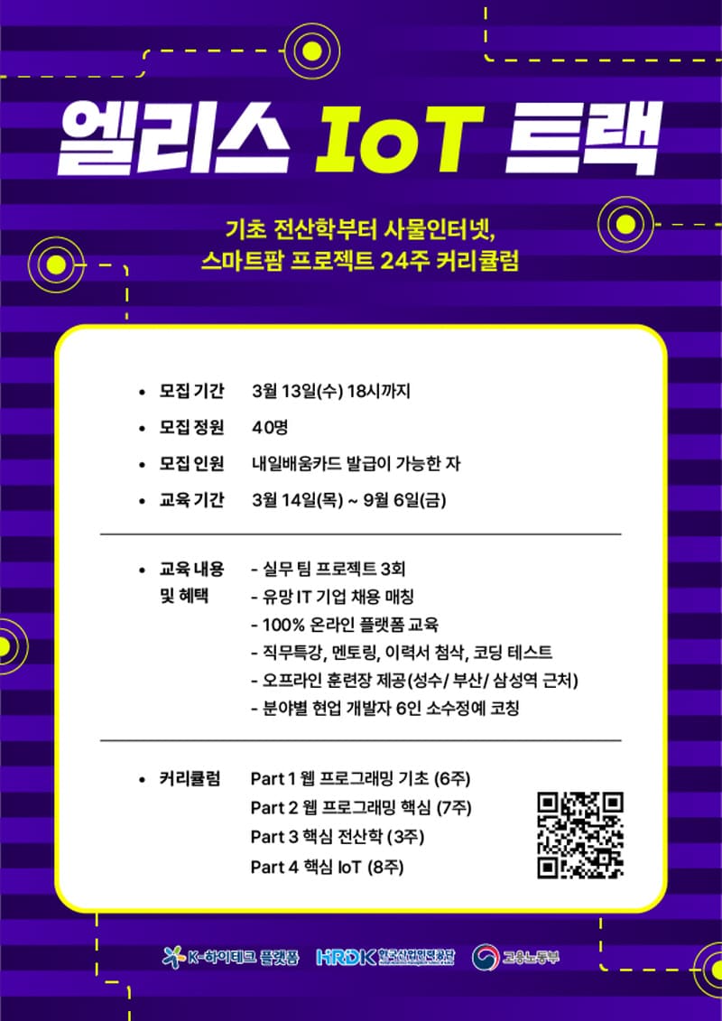 엘리스 IoT 트랙기초 전산학 / 사물인터넷 / 100% 온라인 과정 / 실무 팀 프로젝트문의: 070-4633-4851