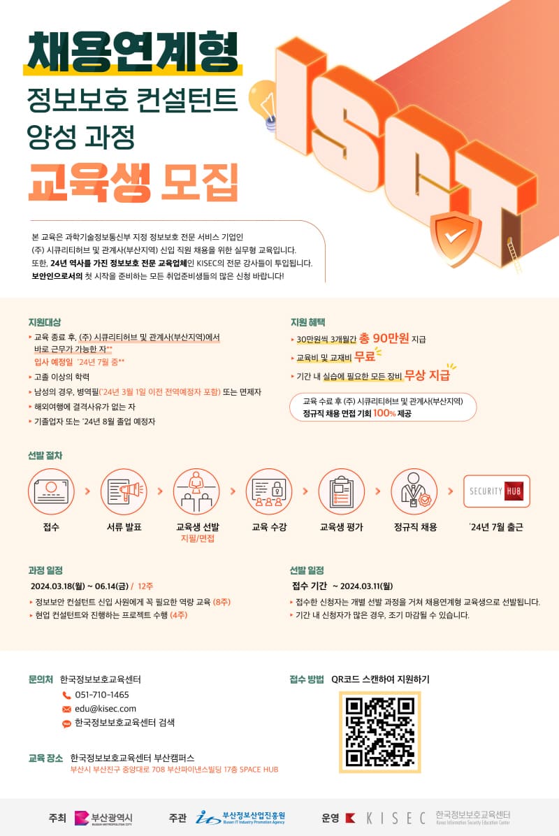 정보보안 컨설턴트 / 현업 프로젝트 / 시큐리티허브 채용연계형 교육과정 /문의 : 051-710-1465