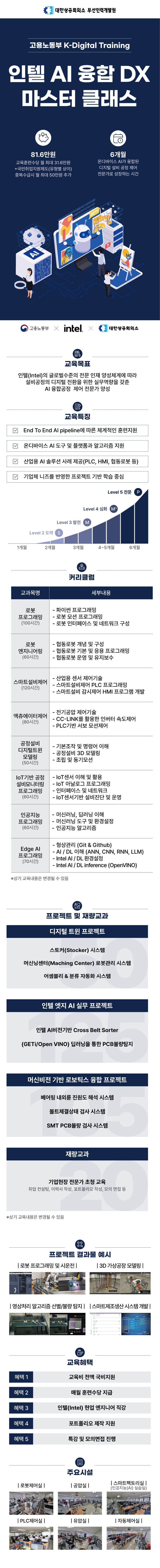 #AI 융합공정 제어 전문가 양성 #프로젝트 기반 학습 #인텔 현업 엔지니어 직강 #훈련수당 지급 (문의 : 051-610-3120)