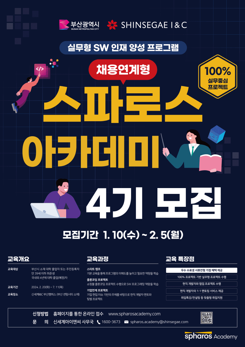 신세계아이앤씨가 운영하는 '스파로스 아카데미 4기' 에 참여할 교육생을 모집하오니, 많은 참여 부탁드립니다.