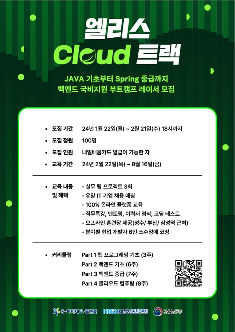 엘리스트랙이 운영하는 '엘리스 Cloud 트랙' 에 참여할 교육생을 모집하오니, 많은 참여 부탁드립니다.