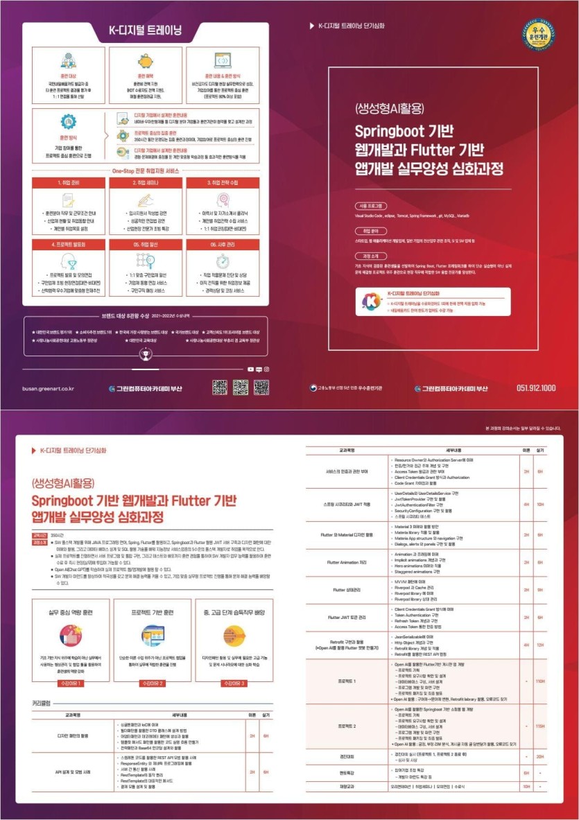 그린컴퓨터아카데미가 운영하는 'Spring Boot 기반 웹개발과 Flutter 기반 앱개발 심화과정'에 참여할 교육생을 모집하오니,
