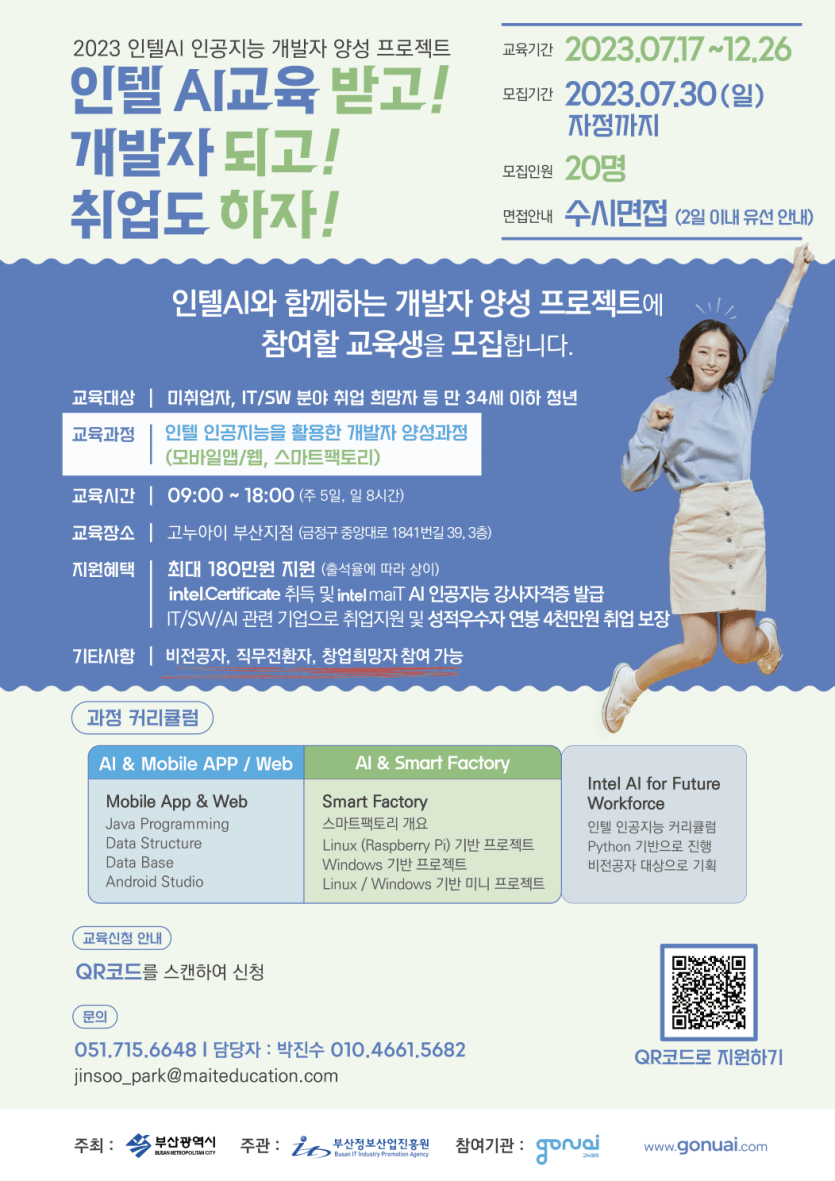 <인텔AI와 함께하는 개발자 양성 프로젝트>에 참여할 교육생을 모집하오니, 많은 참여 부탁드립니다.